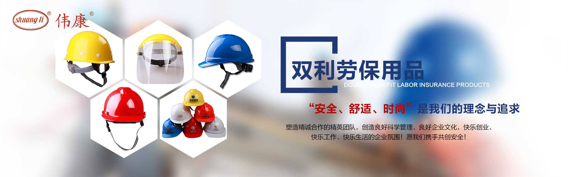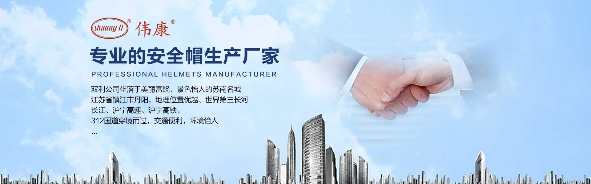 專業(yè)的安全帽生產(chǎn)廠家-鎮(zhèn)江市雙利勞保用品有限公司。雙利公司坐落于美麗富饒、景色怡人的蘇南名城——江蘇省鎮(zhèn)江市丹陽,地理位置優(yōu)越、世界第三長河——長江、滬寧高速、滬寧高鐵、312國道穿境而過,交通便利,環(huán)境怡人。鎮(zhèn)江市雙利勞保用品有限公司是鎮(zhèn)江市第一家創(chuàng)辦的專業(yè)生產(chǎn)安全帽的生產(chǎn)商,并申請擁有自己的品牌:shuangli牌和偉康牌,立足致力于安全帽研究,從原料入手研發(fā)出韌性更強(qiáng)、抗沖力更高的特點(diǎn)。公司根據(jù)實際運(yùn)行需要建立高效、務(wù)實、有序的組織機(jī)構(gòu),實現(xiàn)現(xiàn)代化公司管理。同時公司具備專業(yè)完善的生產(chǎn)設(shè)備和成熟的安全帽生產(chǎn)工藝及先進(jìn)的檢測儀器,為產(chǎn)品的質(zhì)量奠定了堅實的基礎(chǔ),各項技術(shù)指標(biāo)均達(dá)到國家《GB2811-2019》《安全帽》標(biāo)準(zhǔn)。產(chǎn)品廣泛適用于建筑、林業(yè)、石油、石化、造船、港口、冶金等行業(yè)。 “安全、舒適、時尚”是我們的理念與追求,塑造精誠合作的精英團(tuán)隊,創(chuàng)造科學(xué)管理、良好的企業(yè)文化,快樂創(chuàng)業(yè)、快樂工作、快樂生活的企業(yè)氛圍!愿我們攜手共創(chuàng)安全!